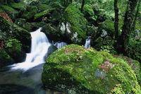 牯牛降雨量充沛,溪流縱橫,溪水常流不斷,潺潺流水,從山頂淙淙而下,遇有石壁斷崖,飛瀉直下形成一道道水瀑,大的如銀河落九天,空谷轟鳴,水汽升騰;小的似白練輕垂,涓涓細(xì)流,如泣如訴。十步一小瀑,百步一大瀑,飛瀑相連,蔚為壯觀。溪流碧綠清澈,時(shí)深時(shí)淺,時(shí)緩時(shí)急,在山間林里穿行,每遇石凼平地,則形成一個(gè)個(gè)大小不一的清潭,晶瑩剔透,異彩紛呈,如同一塊塊翡翠,每至雨季,潭瀑相應(yīng),山色朦朧,如一幅幅墨染的山水圖畫。