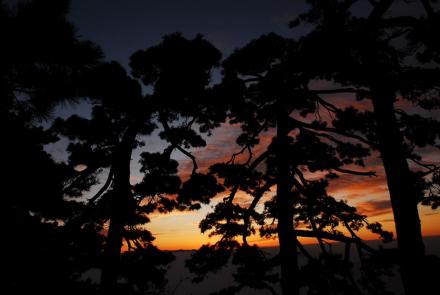 牯牛降峰峰有青松,無(wú)松不奇異,牯牛松漫山遍野,郁郁蔥蔥,樹(shù)冠如華蓋,干枝似虬龍,或怪獸張牙舞爪,或仙女廣袖輕舒,有的游龍走蛇,有的鳳凰展翅,千姿百態(tài),各顯神奇。雖沒(méi)有黃山上的松樹(shù)名氣大,卻比其更多一份天然情趣。那“連理松”本是兩株,日久天長(zhǎng)長(zhǎng)成一體,“在地愿為連理枝”,美好的愿望在這里得到印證;“探海松”長(zhǎng)在危崖之上,主桿挺直,枝椏都曲曲折折探出崖外老遠(yuǎn);在一塊突出的巖石上,一松兀立如同雄鷹,那神情恰似一幅國(guó)畫鷹石圖;更令人嘆為觀止的是一株長(zhǎng)在大石墩上的千年古松,高不到1米,卻有九枝十八丫,枝丫都長(zhǎng)達(dá)數(shù)米,伸出老遠(yuǎn),枝干長(zhǎng)滿著金黃色的蒼苔,遠(yuǎn)遠(yuǎn)望去,活象一條金甲巨龍盤于石上,有人名其為“蟠龍松”,甚至認(rèn)為此為天下第一奇松。嘆曰:牯牛降的黃山松姿態(tài)奇特,單株絲毫不遜色于黃山上的名松,而浩瀚的牯牛松林海,卻是黃山所沒(méi)有的。