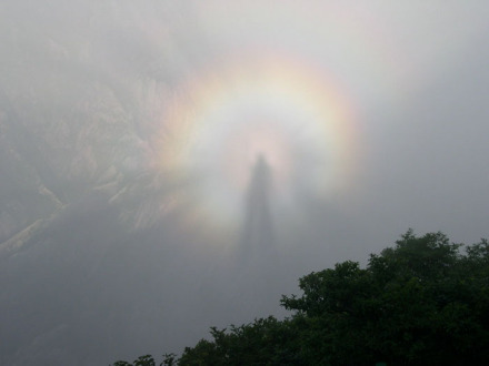 由于牯牛降獨(dú)特的地理及氣候條件,極易形成佛光,牯牛佛光清晰規(guī)整,顯現(xiàn)次數(shù)多,時(shí)間長(zhǎng)。每當(dāng)雨過(guò)天晴,云霧匯聚之時(shí),陽(yáng)光穿云透霧,灑向山谷,云海上常會(huì)懸起一輪五彩光環(huán),光芒四射,艷如花盤,繽紛柔和,仿佛一臺(tái)緩緩滾動(dòng)的佛輦,若隱若現(xiàn),妙趣橫生。通過(guò)陽(yáng)光的作用,若游人奔跑跳躍,光環(huán)中的佛影也隨著舉手投足,配合默契,實(shí)為奇觀。