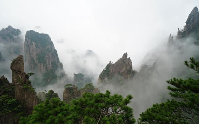 “自古黃山云成!,黃山是云霧之鄉(xiāng),以峰為體,以云為衣,其瑰麗多姿的“云!币悦馈、奇、幻享譽(yù)古今,尤其是雨雪后的初晴,日出或回落時(shí)的“霞!陛^為壯觀。怪石、奇松、峰林飄浮在云海中,可領(lǐng)略“海到盡頭天是岸,山登絕頂我為峰”的境界。