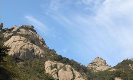 在中峰北、貓碗峰東南,海拔1012米。其上小峰林立,怪石交錯(cuò),三面抬空,傍臨淵壑,林木葳蕤。