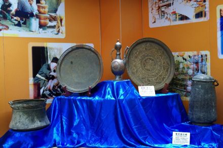 二樓展出主題包括:水煙具與嗅煙具、旱煙具與鴉片煙具、酒具、茶具、文房四寶、發(fā)飾簪釵、民間泥哨、粉撲耳套、筷子籠、弓弩箭具、民族刀具、傳統(tǒng)鎖具專(zhuān)題展。