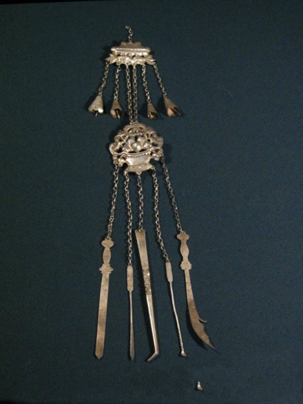 中華民族園收藏著上千枚中華各民族銀飾。大到鳳冠,銀衣、銀角、銀項(xiàng)圈,小如簪釵、戒指、耳環(huán)、銀扣琳瑯滿(mǎn)目,其中不乏明代、清代珍品。征集于北京、貴州、廣西、湖南、 山西、山東、陜西等地。跨越時(shí)間有上千年之久。