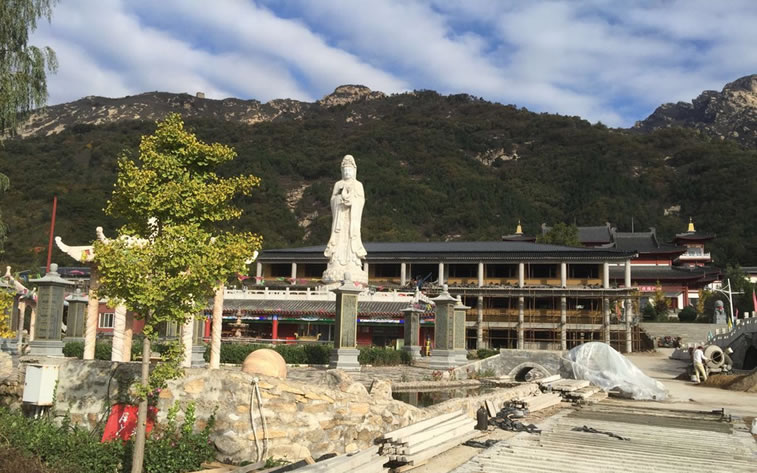 大云峰禪寺 大云峰禪寺位于溪翁莊鎮(zhèn)黑山寺村,寺院始建于唐代,唐代元和年間,憲宗委托高僧選址建寺。游遍北部山川,發(fā)現(xiàn)這處溪水潺潺之地,于是建寺,俗稱(chēng)“黑山寺”。由于山上荊條繁茂密集曾名“荊林禪寺”,宋代曾重修復(fù)建,改名“云峰禪寺”。清乾隆年間,寺院眾僧橫行鄉(xiāng)里,驚動(dòng)朝廷,劉宰相利用皇帝口諭的諧音,嚴(yán)厲懲治了惡僧,最后一把火將寺院燒凈,只留下那洞穴遺跡可辨。后曾重建,又毀于清朝民國(guó)初年,2003年愛(ài)國(guó)華僑佛界厚德大行夏荊山長(zhǎng)老率佛門(mén)道友,開(kāi)始修復(fù)這千年古剎,并更名“大云峰禪寺”。 大云峰禪寺屬于黑山寺風(fēng)景區(qū),后為五座樓靠山,前有朝山,近有案山。坐北朝南,山門(mén)有前廣場(chǎng),山門(mén)內(nèi)建有石橋,過(guò)石橋寺廟逐級(jí)向上是各寶殿,直至最高處的大雄寶殿。寺院西南處建有水池,分多個(gè)個(gè)體,錯(cuò)落有序。