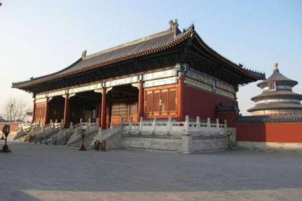 無(wú)梁殿:即齋宮正殿,建于明永樂(lè)十八年(1420年)。此殿因以磚拱承重,不用梁枋而得名;实圻M(jìn)出齋宮均在此舉行有關(guān)禮儀。現(xiàn)殿內(nèi)按乾隆時(shí)期原貌陳列,橫額“欽若昊天”為乾隆御筆,屏風(fēng)、寶座均為原物。