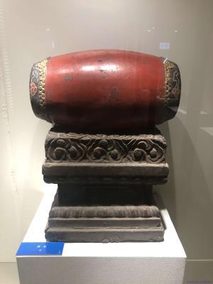 為中和韶樂(lè)樂(lè)器,木框革面,框旁飾六角鏤金盤(pán)龍二,臥置趺上。趺三層,通髹以金,上有垣鏤云紋。作樂(lè)時(shí)以左右手拊拍,每建鼓一擊,則搏拊?xún)蓳簦詾閼?yīng)合。