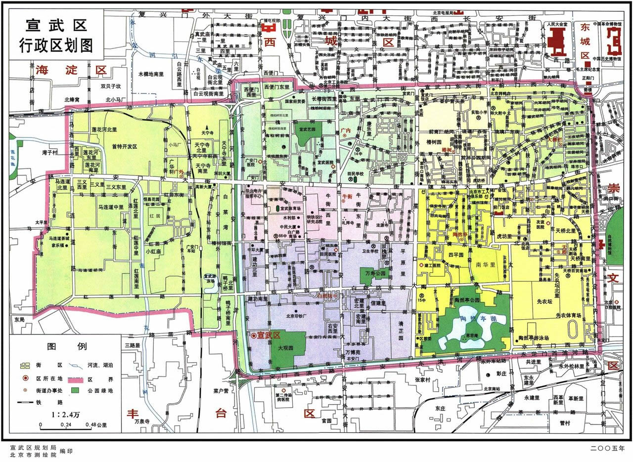 宣武區(qū)轄8個街道:大柵欄街道、天橋街道、椿樹街道、陶然亭街道、廣安門內(nèi)街道、牛街街道、白紙坊街道、廣安門外街道。