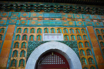 智慧海是萬壽山頂最高處一座宗教建筑,是一座完全由磚石砌成的無梁佛殿,由拱券結(jié)構(gòu)組成。建筑外層全部精美的黃、綠兩色琉璃瓦裝飾,上部用少量紫色、藍色的琉璃瓦蓋頂,尤以嵌于殿外壁面的千余尊琉璃佛更富特色!爸腔酆!币辉~為佛教用語,本意是贊揚佛的智慧如海,佛法無邊。該建筑雖極像木結(jié)構(gòu),但實際上沒有一根木料,全部用石磚發(fā)券砌成的,沒有枋檁承重,所以稱為“無梁殿”。又因殿內(nèi)供奉了無量壽佛,所以也稱它為“無量殿”。