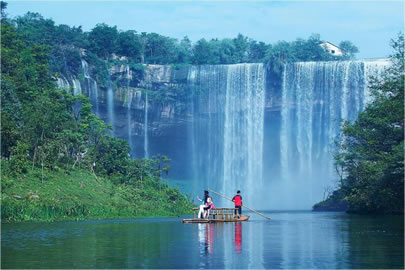 萬州大瀑布又稱青龍瀑布、甘寧瀑布。位于核心景區(qū)青龍河中段,寬151米,高64.5米,單掛面積9739.5平方米,為迄今發(fā)現(xiàn)的亞洲面積最大的單掛瀑布。瀑布長(zhǎng)年浩浩蕩蕩,凌空飛瀉,其勢(shì)如千軍萬馬橫空出世,氣吞萬象。在陽光的照射下,瀑珠時(shí)時(shí)生輝,瀑霧處處成虹。隨著水勢(shì)大小、陽光強(qiáng)弱、觀賞角度的變換,彩虹的位置、形態(tài)、色澤還會(huì)發(fā)生奇異的變化,形成“飛瀑斜虹”“臥波長(zhǎng)虹”“雙曲彩虹”“跨岸飛虹”“水簾霓虹”“飲洞巨虹”等美景。