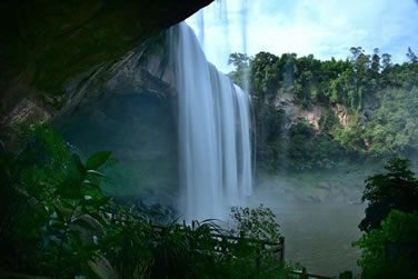 水簾洞位于瀑布下方,由整塊的巨巖組成。巨巖由砂巖青石構(gòu)成,面積有上萬平方米。水簾洞內(nèi)能以360度的全景視角觀賞到大瀑布“飛流直下三千尺,疑是銀河落九天”的恢宏氣勢(shì),體驗(yàn)與瀑布親密接觸的清爽,領(lǐng)略春雨瀟瀟、秋雨綿綿、夏雨磅礴的四季風(fēng)雨情致,有奇妙的季節(jié)穿越之感。