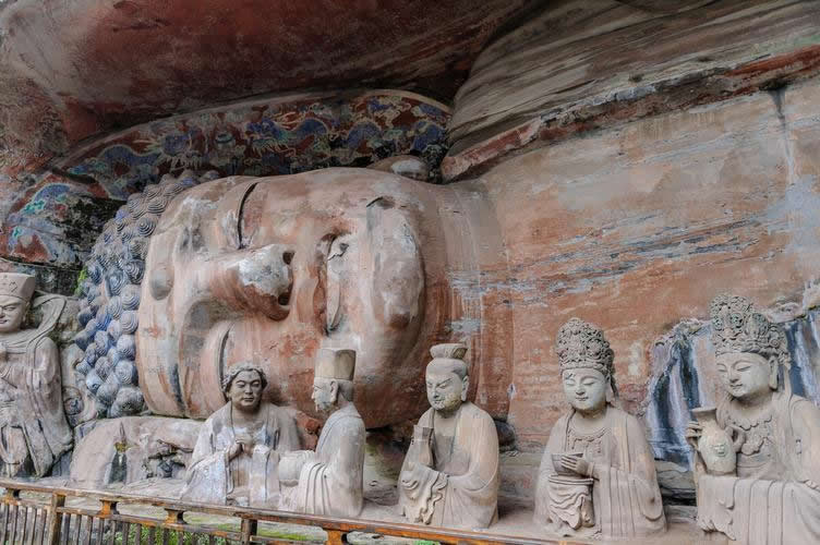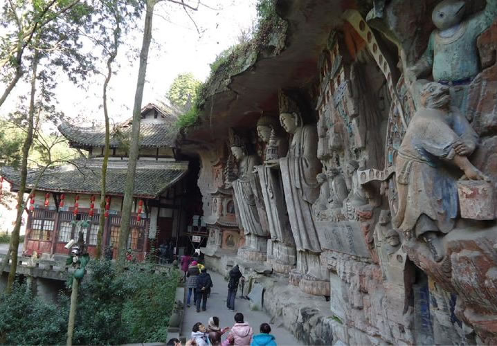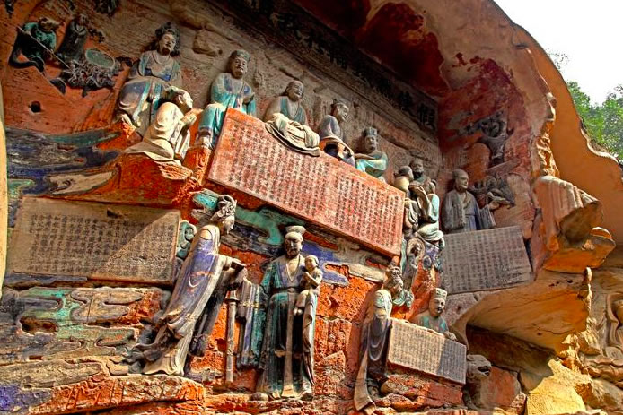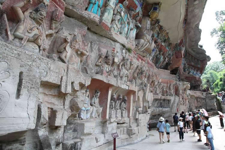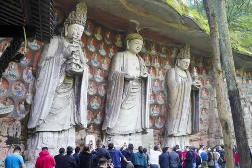 重慶市的大足石刻以其規(guī)模宏大、雕刻精美、題材多樣、內(nèi)涵豐富和保存完整而著稱于世。它集中國佛教、道教、儒家“三教”造像藝術(shù)的精華,以鮮明的民族化和生活化特色,成為中國石窟藝術(shù)中一顆璀璨的明珠。它以大量的實物形象和文字史料,從不同側(cè)面展示了九世紀(jì)末至十三世紀(jì)中葉中國石刻藝術(shù)的風(fēng)格和民間宗教信仰的發(fā)展變化,對中國石刻藝術(shù)的創(chuàng)新與發(fā)展做出了重要貢獻(xiàn),具有前代石窟不可替代的歷史、藝術(shù)和科學(xué)價值。許多歐洲人、尤其是法國人,對大足石刻寵愛倍加。