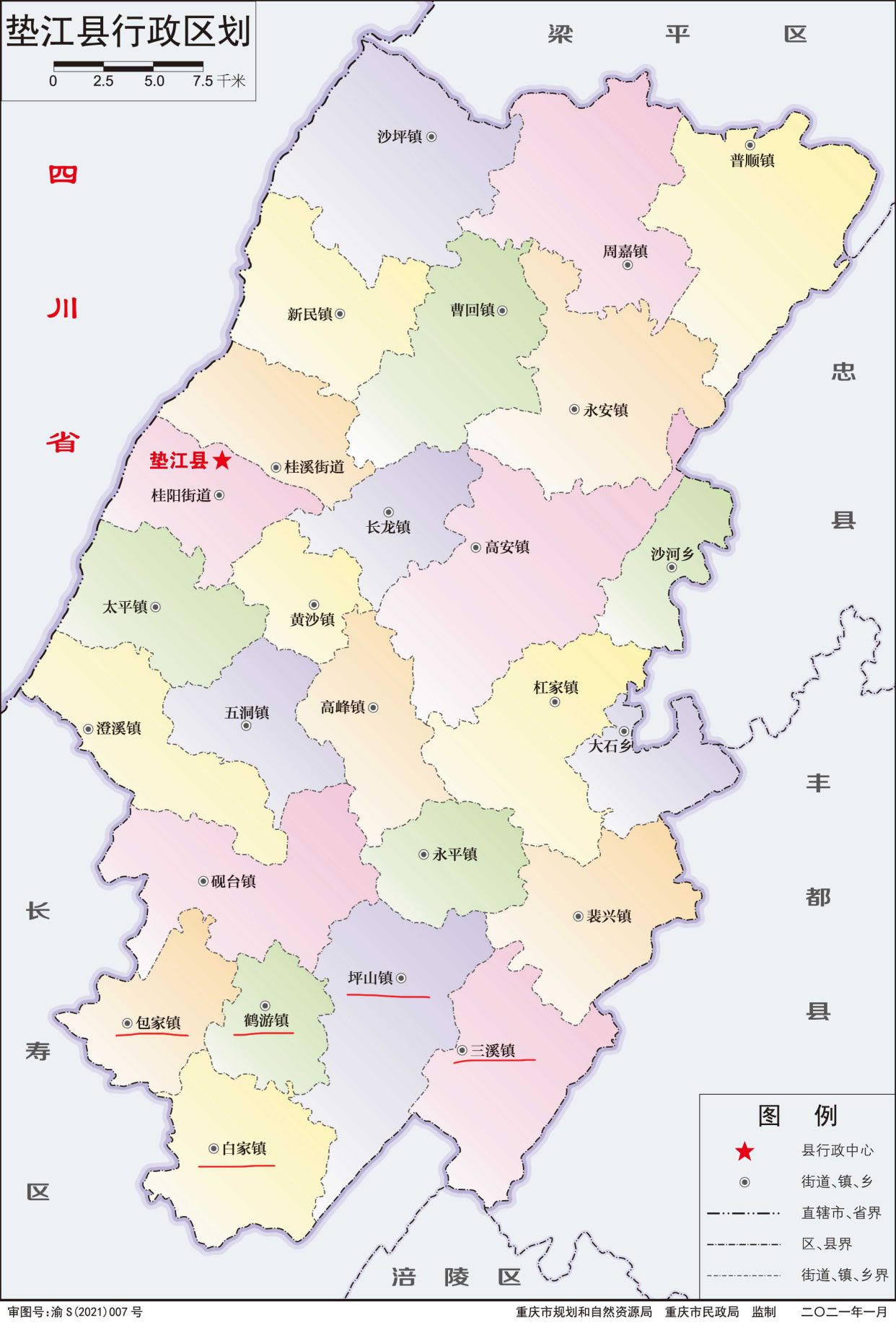 墊江縣轄2個(gè)街道、22個(gè)鎮(zhèn)、2個(gè)鄉(xiāng):