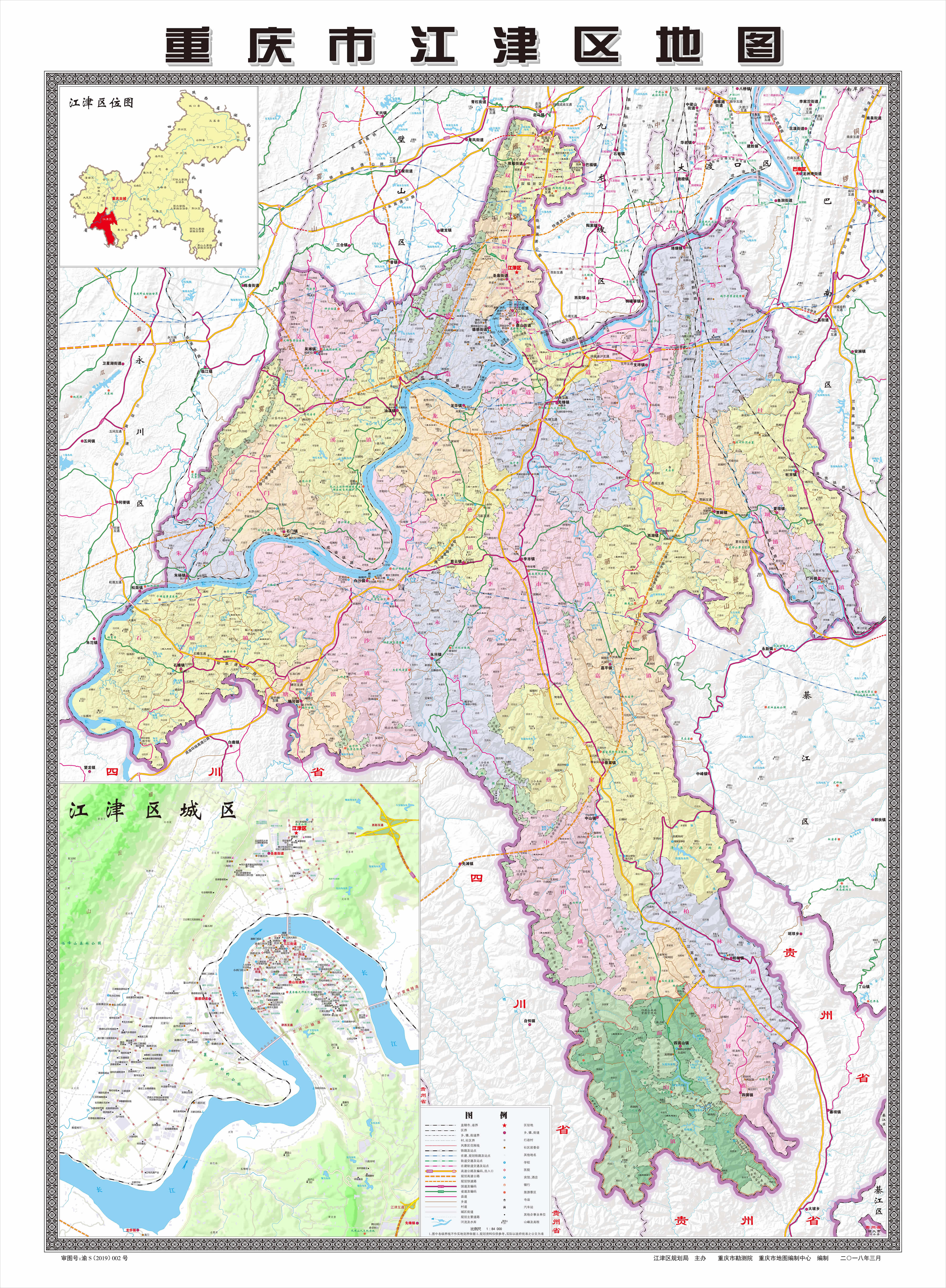 鎮(zhèn):珞璜鎮(zhèn)、白沙鎮(zhèn)、油溪鎮(zhèn)、李市鎮(zhèn)、先鋒鎮(zhèn)、慈云鎮(zhèn)、杜市鎮(zhèn)、石蟆鎮(zhèn)、蔡家鎮(zhèn)、吳灘鎮(zhèn)、賈嗣鎮(zhèn)、永興鎮(zhèn)、龍華鎮(zhèn)、石門(mén)鎮(zhèn)、柏林鎮(zhèn)、朱楊鎮(zhèn)、嘉平鎮(zhèn)、中山鎮(zhèn)、塘河鎮(zhèn)、西湖鎮(zhèn)、夏壩鎮(zhèn)、廣興鎮(zhèn)、四面山鎮(zhèn)、四屏鎮(zhèn)、支坪鎮(zhèn)