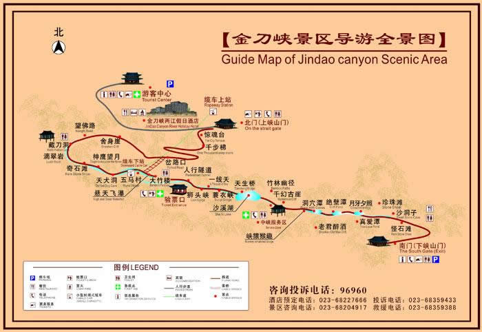 金刀峽地勢雄偉,以峽著險,以林見秀,以巖稱奇,以水顯幽。金刀峽長約10公里,分上下兩段。上段由于喀斯特地質(zhì)作用,地面切割強(qiáng)烈,金刀神功般形成了獨(dú)特的峽谷幽壑,石壁如削,兩山岈合,垂直高度超過百米,上有古藤倒掛,下有潺潺流水;下段由于流水侵蝕的作用,有洞穴群提高潭潭相連,飛泉瀑布層層疊疊,古鐘乳、石筍、石柱更是千姿百態(tài),堪稱全國最長的峽谷十里仿古木棧道,讓人驚嘆不已。憑棧探幽,可感悟那蘊(yùn)藏于大自然山水的天地靈氣。十公里風(fēng)景線以雄、險、奇、幽著稱,集瀑、泉、洞、峽于一體。有驚魂臺、藏刀洞、懸天飛瀑、天犬洞、神鷹峽、獅頭峽、一線天、沙溪湖、中峽天然浴場、千幻古巖、彌樂佛、心形潭等四十多個景點(diǎn)可供游客探險、攀登和水上游樂,是人們度假避暑、踏青、回歸自然的旅游佳境,被游客譽(yù)為“夢中的香格里拉”、“中國第一險峽”。