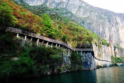 龍門峽是小三峽的第一峽,從大寧河口至東坪壩,全長8千米。絕壁高聳,兩山對峙,形若大門。由于山勢雄偉,有“不是夔門勝似夔門”之譽。峽內(nèi)主要景點有古棧道遺跡、青獅守門、九龍柱、熊貓洞、琵琶洲等。