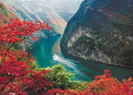 巫山的氣溫給紅葉創(chuàng)造最佳生長和形成時機(jī)。三峽庫區(qū)蓄水達(dá)到170.9米,江、山、紅葉三位一體,高峽平湖與漫山紅葉交相輝映。巫山紅葉集中連片有6700公頃,其中以小三峽的巴霧峽最為集中。秋季漫山紅葉,層林盡染,游客既可乘車上山,隨公路盤旋觀賞紅葉景觀,亦可坐船仰望兩岸紅葉,還可以徒步林中小道近距離觀賞紅葉。