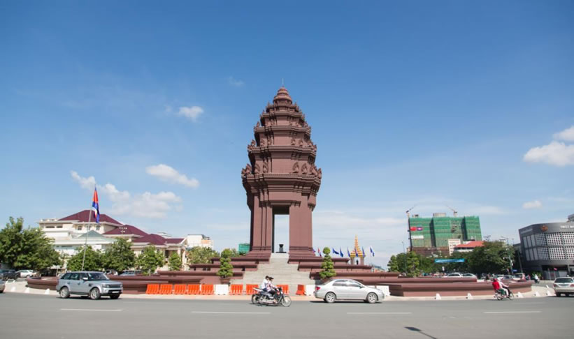 獨立紀念碑 柬埔寨獨立紀念碑位于諾羅敦大道和西哈努克大道交叉處,為紀念1953年11月9日柬擺脫法國殖民統(tǒng)治,獲得完全獨立而建。1958年3月落成,高37米,共7層,上有蛇神(柬文化象征)100條。每年獨立節(jié)時,柬國王或國王代表都要在此舉行隆重的慶典。來訪的外國元首也多到這里獻花圈。