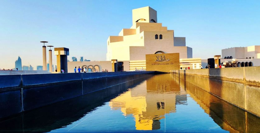 伊斯蘭藝術(shù)博物館 多哈伊斯蘭藝術(shù)博物館位于卡塔爾首都多哈海岸線之外的人工島上﹐占地4.5萬(wàn)平方米,是迄今為止最全面的以伊斯蘭藝術(shù)為主題的博物館。博物館外墻用白色石灰石堆疊而成,折射在蔚藍(lán)的海面上,形成一種懾人的宏偉力量。而再看建筑的細(xì)部,典型的伊斯蘭風(fēng)格幾何圖案和阿拉伯傳統(tǒng)拱形窗,又為這座龐然大物增添幾分柔和,稍稍中和了它的英武之氣。博物館中庭偌大的銀色穹頂之下,150英尺高的玻璃幕墻裝飾四壁,人們可以透過(guò)它望見碧海金沙。