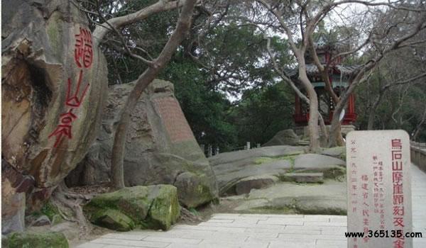 (二)于 山 位于鼓樓區(qū)東南部。相傳戰(zhàn)國時期因有于越族居此而得名。閩越王每年九月初九日在此登高,大宴賓客,又稱九日山。漢代有臨川何氏九兄弟在此煉丹修仙,故又名九仙山。“文化大革命”時期曾改名紅巖山,1997年復(fù)名于山。面積11.9公頃,海拔58.6米。因山峰形似巨鰲,于是有六鰲勝跡:攬鰲亭、倚鰲軒、應(yīng)鰲石、接鰲門、步鰲坡、叢鰲峰,另有24景,如九日臺、獅子巖、集仙巖、小華峰等。現(xiàn)存宋、元、明、清及近代的摩崖石刻113段,其中宋刻35段,明、清占大半。