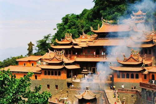 蓬萊祖殿為清水巖的主體建筑,創(chuàng)建于宋代。它依山臨壑,外觀呈“帝”字形,七妙地將人工建筑與自然巖壑融為體,古典雅,輪奐輪閏正殿為重檐山頂?shù)臉情w式建筑,由昊夭口、祖師殿、釋迦樓三部分組成,大殿兩側(cè)有檀樾廳、觀音廳、芳名廳、齋房、客舍等等,鱗次櫛比,相傳共有九十九間。蓬萊祖殿無論在建筑布局還是建筑風(fēng)格以及雕技術(shù)、裝外飾工藝方面都頗具特色,是福建省重點文物保護(hù)單位。 |