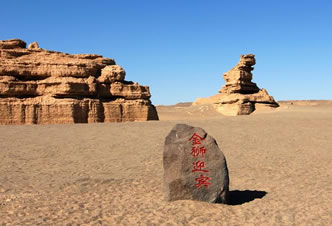 塔狀雅丹,是雅丹地貌發(fā)育壯年期的產(chǎn)物。由于風(fēng)吹、雨淋、水沖,大型雅丹體被侵蝕,沿裂隙不斷崩塌而逐漸變小,形成了如雄獅伏臥的景觀。它似乎在注視和迎接著遠(yuǎn)道而來的游客。