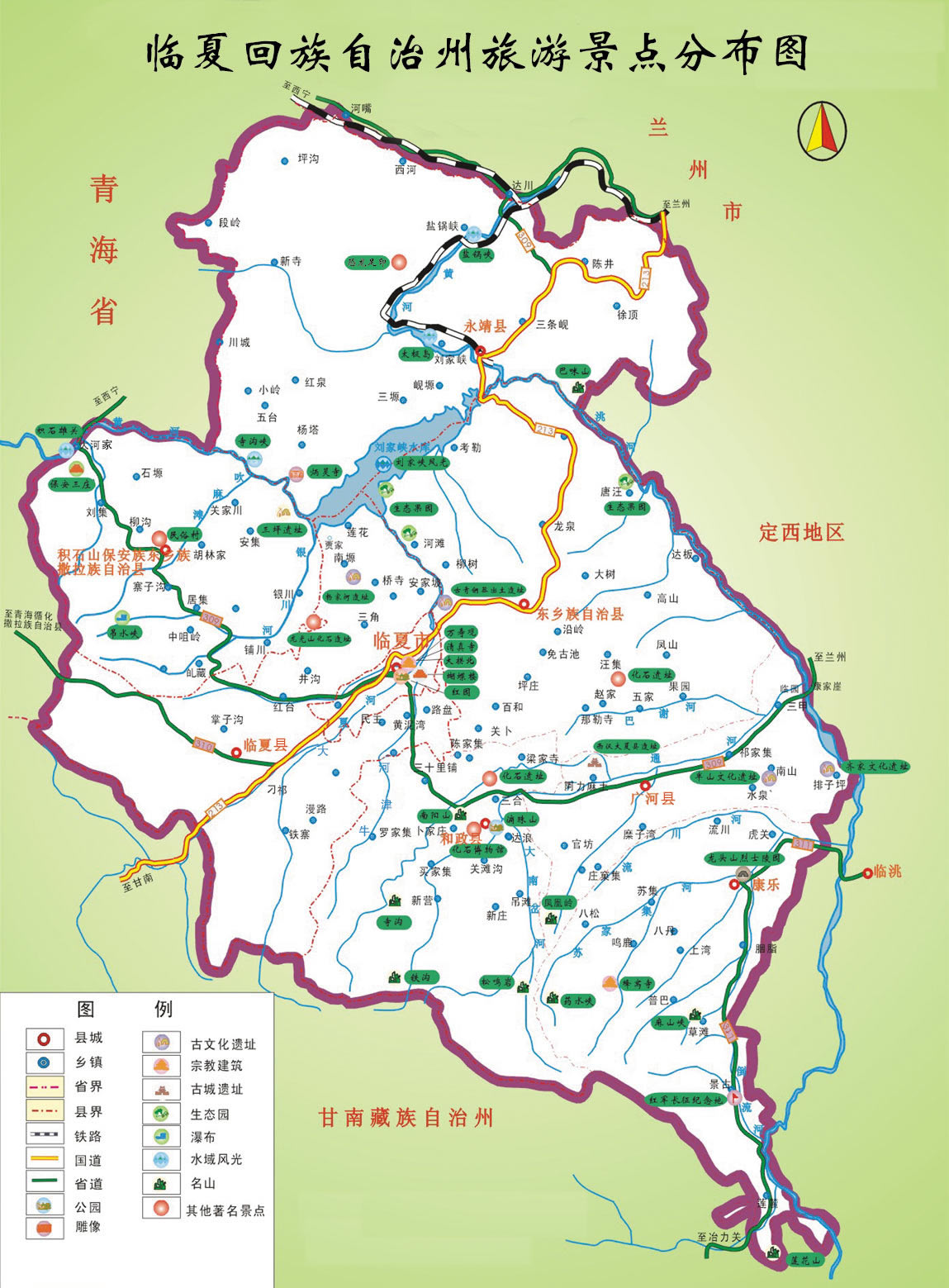 臨夏州轄1個(gè)縣級(jí)市、5個(gè)縣、2個(gè)民族縣: