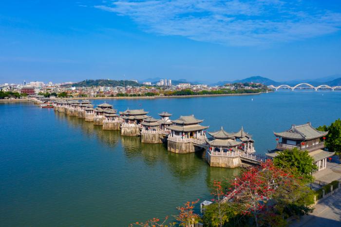 廣濟橋,即潮州廣濟橋,古稱康濟橋、丁侯橋、濟川橋,俗稱湘子橋,又稱潮州湘子橋,中國四大古橋之一,中國四大名橋之一 [16],被橋梁專家茅以升譽為“世界上最早的啟閉式橋梁”。廣濟橋位于廣東省潮州古城東門外,橫跨韓江,聯(lián)結(jié)東西兩岸,集梁橋、浮橋、拱橋于一體,為古代廣東通向閩浙交通要津,是潮州八景之一,是潮州文化的歷史地標(biāo)、全國重點文物保護(hù)單位,國家AAAA級景區(qū)。