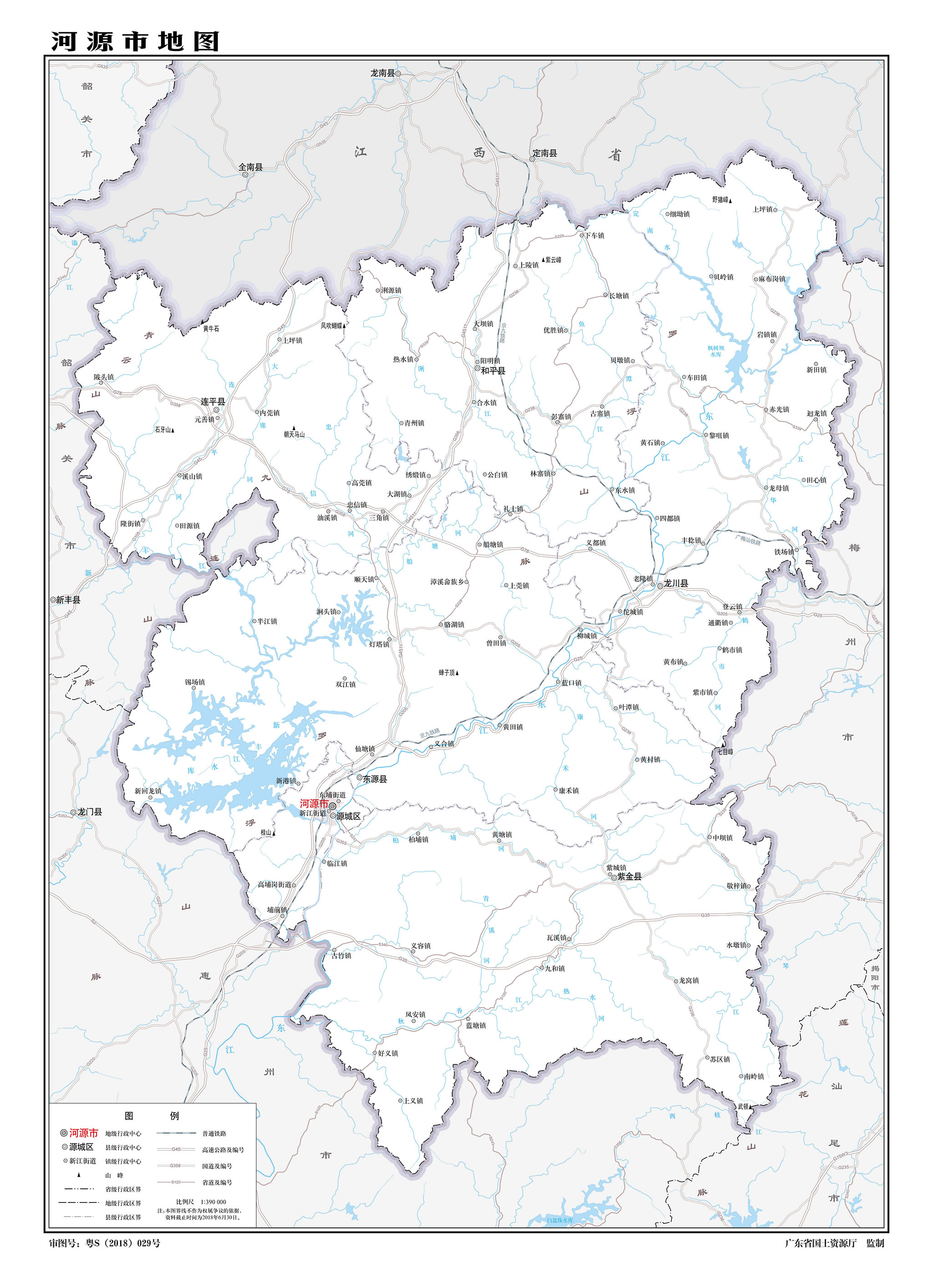 河源市轄1個市轄區(qū)、5個縣: