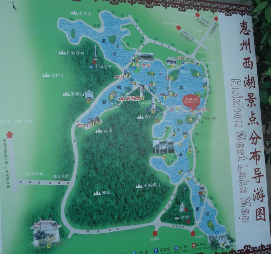 其山川秀邃、幽勝曲折、浮洲四起、青山似黛,古色古香的亭臺(tái)樓閣隱現(xiàn)于樹(shù)木蔥蘢之中,景域妙在天成,有“苧蘿西子”、“嶺南明珠”之美譽(yù),并有“大中國(guó)西湖三十六,唯惠州足并杭州” 的史載。歷代以蘇東坡、李商隱、楊萬(wàn)里、祝枝山、陳堯佐、白玉蟾、梁鼎芬、丘逢甲為代表的400多位文人墨客曾踏足惠州,為西湖留下了寶貴的文化遺產(chǎn);近代孫中山、周恩來(lái)等領(lǐng)導(dǎo)人在惠州從事過(guò)革命運(yùn)動(dòng),在西湖留下了光輝的足跡。這些歷史古跡和革命勝跡與西湖的青山秀水融為一體,相得益彰。
