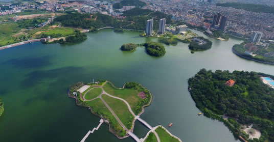 鴛鴦湖位于陽江市中心。水面積為47公頃,為天然的氣溫調節(jié)湖。鴛鴦湖湖水清澈,湖岸楊柳垂堤,山清水秀,花繁葉茂,樓臺閣榭點綴其間,與綠樹相映成趣,別具南國湖光韻味。湖邊有南國風箏場,1991年建成,占地12萬平方米,“南國風箏場”由原廣東省省長葉選平題字。風箏場可容數(shù)萬群眾同時進行放飛風箏娛樂活動,是市民和游客休閑、娛樂的好去處,是我國極負盛名的風箏放飛場,每年在這里舉行放風箏比賽。
