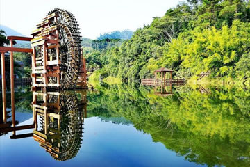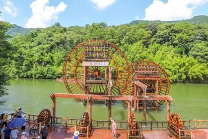 位于八寨溝景區(qū)大門外,是一個(gè)人工湖,湖面寬廣,三面環(huán)山,景色秀麗,可乘木船游覽龍珠湖風(fēng)光,混凝土大壩外有人工瀑布,瀑布下面是深水潭,有一架仿古大水車,在流水驅(qū)動(dòng)下不停轉(zhuǎn)動(dòng)。