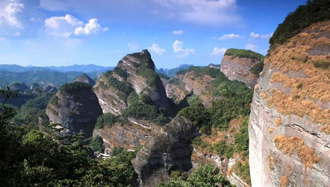八角寨地處湘桂交界的、五嶺山脈里最長(zhǎng)者越城嶺山脈(長(zhǎng)達(dá)二百多公里)西北側(cè)的余脈(廣義崀山即以崀山為代表的跨越新寧縣和資源縣的整條山或大崀山),屬典型的丹霞地貌,有關(guān)專(zhuān)家譽(yù)為“丹霞之魂、國(guó)家瑰寶 ”,“中國(guó)最美的七大丹霞”之一。