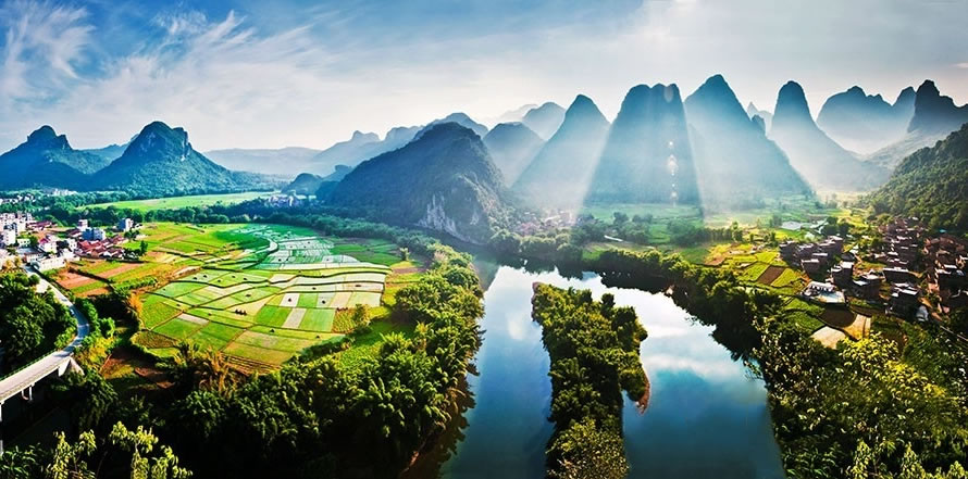 古龍河景區(qū),位于廣西宜州祥貝鄉(xiāng)古龍村,這里是廣西最后的山水凈土,有“世外仙境”的美譽,是國家AAA級景區(qū)、中國最美意境旅游景區(qū)。古龍河山清水秀,竹翠峰美,游客乘坐竹筏順?biāo)拢梢杂^賞到中國最大的壯族水車,體驗到魚鷹捕魚、江中漁韻的詩情畫意,欣賞到壯族古老的圖騰巖畫,感受到最有民俗特色的壯族情歌。在當(dāng)?shù)亓鱾髦?ldquo;桂林山水甲天下,古龍山水賽桂林”的說法。