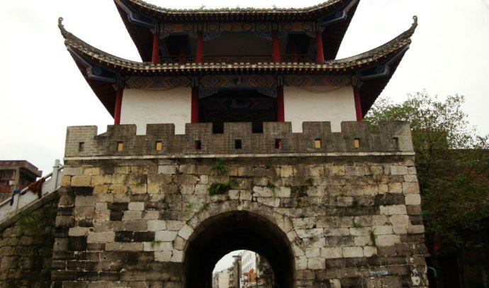 四牌樓,位于宜州區(qū)一中東側(cè),建于乾隆二十五年,時稱“會魁樓”,又稱“四牌樓”。此樓位于十字路口,形成東西南北四個門洞,內(nèi)外相通。四牌樓樓高三層,一樓全用大型細鑿條石砌成,呈四方形,工藝精巧。邊長11.5米,四面拱門各高3.9米,寬3.5米。二三樓為木質(zhì)結(jié)構(gòu)的重檐樓閣,紅漆圓柱,飛彩流丹,古樸莊重。“文革”中二三樓被拆毀,只存有一樓拱洞石門,樓上建筑及額匾碑刻已不復(fù)存在。