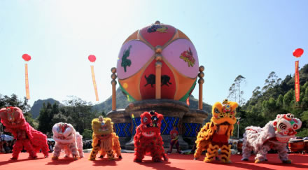 繡球廣場(chǎng)的核心景觀是直徑為8.08米的繡球雕塑,也是舊州古城作為中國(guó)繡球之鄉(xiāng)的重要文化地標(biāo),寓意代表公元808年(唐朝元和三年)靖西正式建州定州府所在地為“那簽”(今舊州古城)。繡球雕塑底座為3個(gè)壯錦環(huán)繞的銅鼓,壯錦高1.496米,寓意代表抗倭民族英雄瓦氏夫人公元1496年(明朝弘治九年)誕生于舊州。銅鼓刻有《繡球賦》等與舊州的相關(guān)詩(shī)詞。整個(gè)繡球雕塑總高12.75米,代表張?zhí)熳谟诠?275年(宋朝德祐元年)正式進(jìn)入舊州古城帶來(lái)先進(jìn)中原文化。