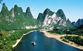 主要路線為桂林磨盤山碼頭或竹江碼頭——陽朔段航線,是漓江航區(qū)的精華部分。沿途景點有:冠巖、童子拜觀音、九馬畫山、黃布倒影等。游覽時長4.5小時左右。