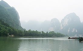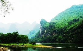 楊堤游覽區(qū)北起楊堤官巖村,接興坪游覽區(qū),約18公里江段,是漓江的黃金水段。楊堤兩岸翠竹成林,連成十里的綠色翠屏,搖曳在青山、秀水、飛瀑、淺灘之間,塑造了漓江景區(qū)清幽、寧靜的環(huán)境。