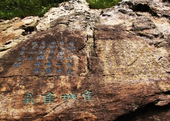 銅盆山摩崖石刻在中渡鎮(zhèn)舊縣村后銅盆山石壁上,為明萬歷年間刻石,又稱平蠻碑記。上方刻“一方保障”四字,馬龍川書。碑文記載萬歷元年、二年(公元1573年一1574年)統(tǒng)治者調(diào)集左右兩江及湖浙官兵10萬名,鎮(zhèn)壓懷遠(yuǎn)、洛容、柳城、永寧、永福、陽朔、荔浦等地農(nóng)民起義情形。又刻石隆慶年間五言律詩兩首,追述鎮(zhèn)壓韋銀豹農(nóng)民起義。
