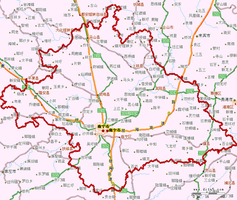 南寧市轄7個市轄區(qū),5個縣: