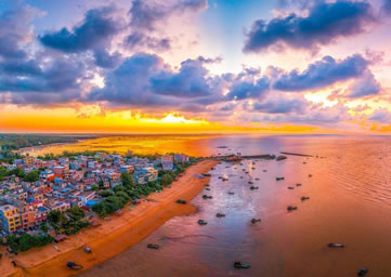 三娘灣沿岸月亮沙灘長約1.5公里,掩映在欏麻防風(fēng)林中的海灘呈金黃色,松軟細(xì)膩;緊傍三娘灣的漁村里雞鳴犬吠,炊煙裊裊,讓人領(lǐng)略到與都市旅游迥然不同的野趣。