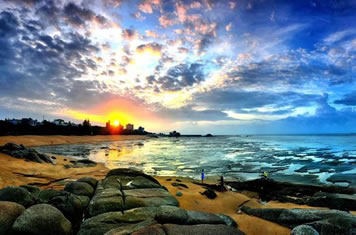 傍晚在松軟潔凈的沙灘上拾貝捉蝦,收獲一份意外的驚喜,享受自己辛勤勞動(dòng)的成果,不必?fù)?dān)心夕陽西下,在暮色蒼茫的漁村下榻,潔凈簡樸的漁家旅店是濱海月色星光下最溫馨的家。