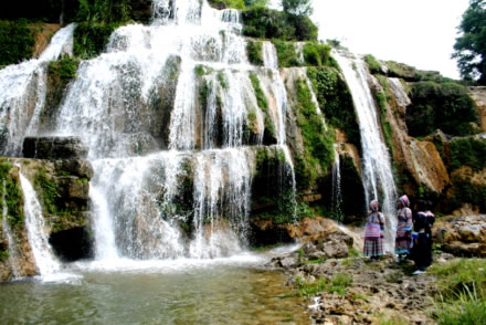 這里離米底河瀑布約一公里,突然泄入約500米的溶洞。經(jīng)過天生橋、天窗眼又流進“摩天大樓”下變?yōu)榉,這里呈現(xiàn)的是只聞其聲、不見其影,然后從一線天大峽谷涌出,頗有亂石穿空,驚濤拍岸的雄奇氣勢。