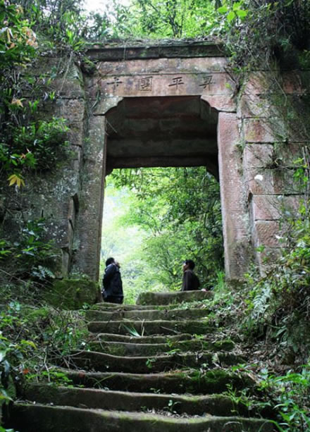 丙安村古寨門分東華門和太平門,分別位于丙安鄉(xiāng)古景社區(qū)東端、西端。清代所建,面積25平方米。為拱形石門。東華門高3.1米、寬2.2米、厚度為1.2米,另有木門兩扇用于關(guān)閉寨門之用,單扇木門寬為1.2米。太平門高2.4米、寬2.3米、厚度為1.5米,出寨門向西下坡是一條總長(zhǎng)63米的石梯,每梯長(zhǎng)1.7米、寬0.3米、高0.15米,右側(cè)有高為0.7米的條石護(hù)欄,呈階梯型向下延伸通向古碼頭。