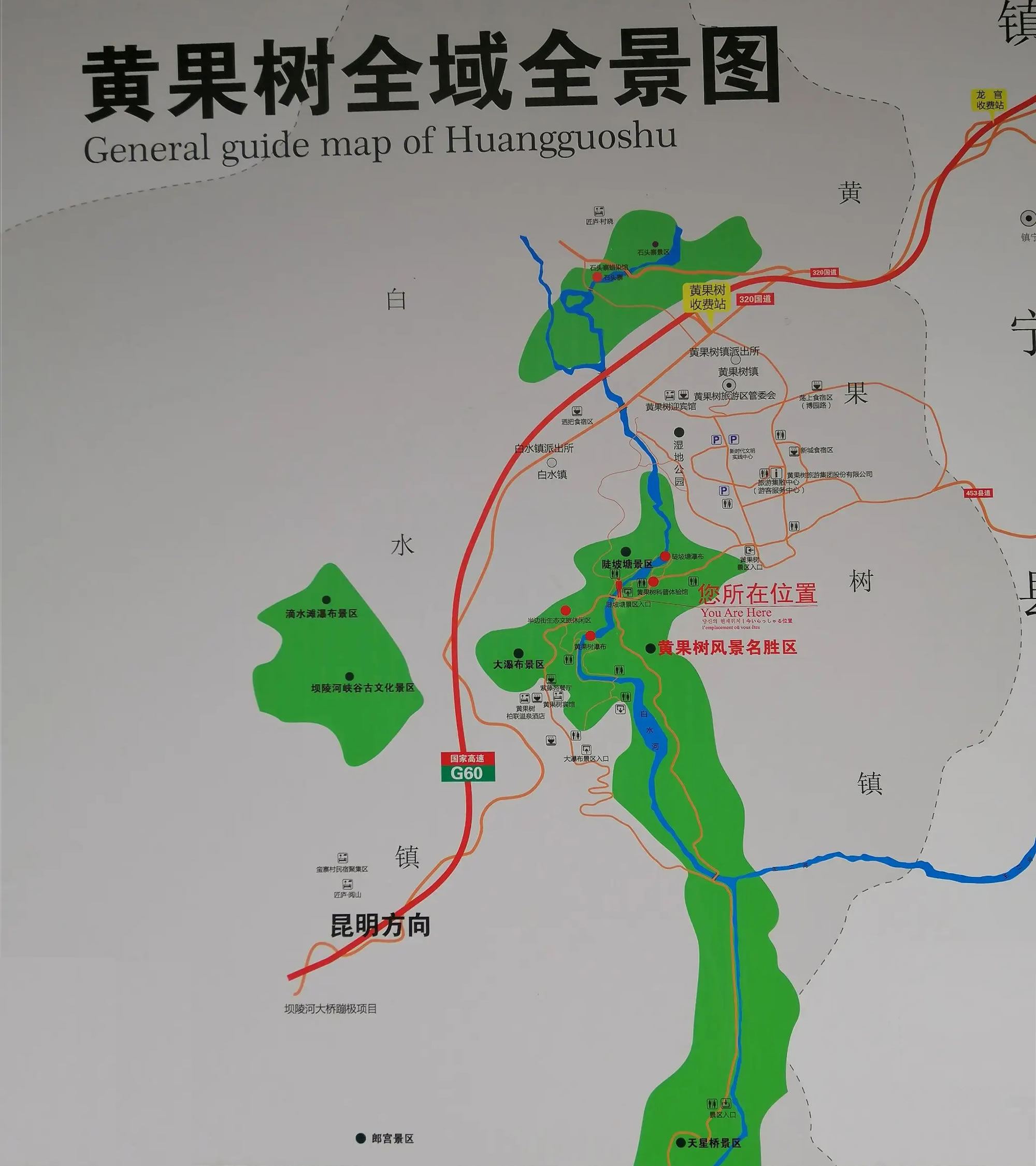 狹義上的黃果樹風景名勝區(qū)只包含黃果樹大瀑布景區(qū)、天星橋景區(qū)和陡坡塘景區(qū)三大塊。游客瀏覽所購買的門票、公園景區(qū)內(nèi)含的觀光車、官網(wǎng)地圖上所劃出的范圍也只包含這三個相連的區(qū)域。