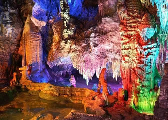 龍宮水溶洞長達(dá)15公里,為國內(nèi)之冠。景區(qū)對外開放了二段,長1260米,洞內(nèi)鐘乳千姿百態(tài),與北方溶洞相比更顯細(xì)致與精巧,與南方溶洞相比更顯神秘與奇特,其洞廳構(gòu)造宛如神話中的龍王宮殿!暗叵吕旖⑻焐鲜帧钡娜芏达L(fēng)景價(jià)值,是目前國內(nèi)已發(fā)現(xiàn)的其它同類型景區(qū)中無以比擬的,大詩人艾青稱“大自然的大奇跡”,國畫大師劉海粟譽(yù)“天下奇觀”,全國溶洞專家感嘆“覽龍宮知天下水洞,蕩輕舟臨人間仙境”!吧讲辉诟撸邢蓜t名,水不在深,有龍則靈”,龍宮就是這樣的人間天堂。