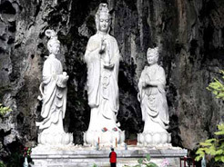 觀音洞,全國最大的洞中寺院,總體面積達(dá)2萬多平方米,最大的特點(diǎn)就是所有的殿堂都是天然溶洞。人工雕刻佛像32尊,其中觀音像高達(dá)12.6米,主殿上有一天然神似觀音的鐘乳石,天然和人造的佛像渾為一體。天下名山僧占多,而天然溶洞寺院實(shí)屬罕見,其規(guī)模居全國之首。