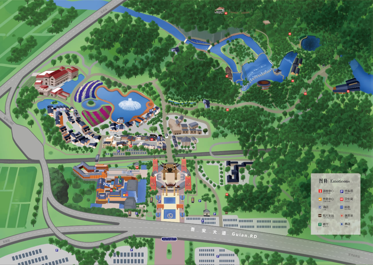 經(jīng)過(guò)升級(jí)改造后,天河潭現(xiàn)增游客服務(wù)中心、太陽(yáng)廣場(chǎng)、貴陽(yáng)故事街、濱水休閑區(qū)、五色花海、戶外婚慶草坪等區(qū)域,并配套文化娛樂(lè)、餐飲購(gòu)物、休閑度假、商務(wù)會(huì)議、民俗體驗(yàn)、戶外婚禮等多元化服務(wù)。