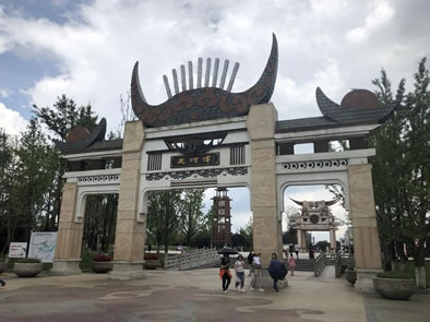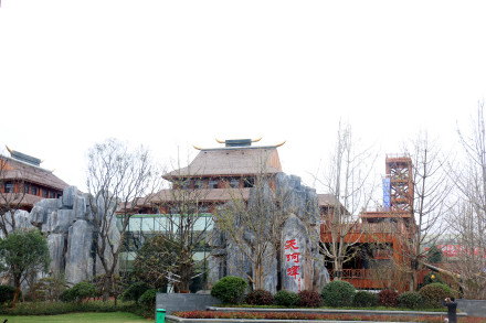 游客服務(wù)中心,占地面積3萬(wàn)平方米,同樣以民族元素為特色建造。它臨近主出入口和停車場(chǎng),是游客到達(dá)天河潭第一站。