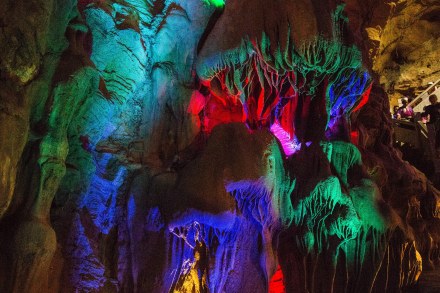 洞內(nèi)滿布玲瓏剔透,形態(tài)各異的鐘乳石,千姿百態(tài)。讓人流連忘返,其中較著名的景點(diǎn)有:”猴子撈月“、”藏經(jīng)閣“、”千年等一回“、”春滿人間“等。