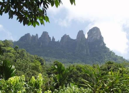 仙安石林位于毛感鄉(xiāng)境內(nèi),距保亭縣城約40公里路程。1992年以前這里還是一個鮮為人知的地方,只有極少數(shù)采藥人偶爾闖進過林中,因為不了解這奇怪的石頭,他們敬畏地將此山稱為“鬼山”或“神山”。1992年,海南師范學院的楊火教授在偶然中發(fā)現(xiàn)這一處瑰寶,并命名為“仙安石林”。仙安石林集奇石青山、懸崖洞穴、古樹巨藤于一體,本已獨得大自然萬般寵愛。1996年,距此數(shù)十里地的一個苗村搬遷到南片石林旁的一處平地上,石林又平添了一層濃郁的苗家風情。